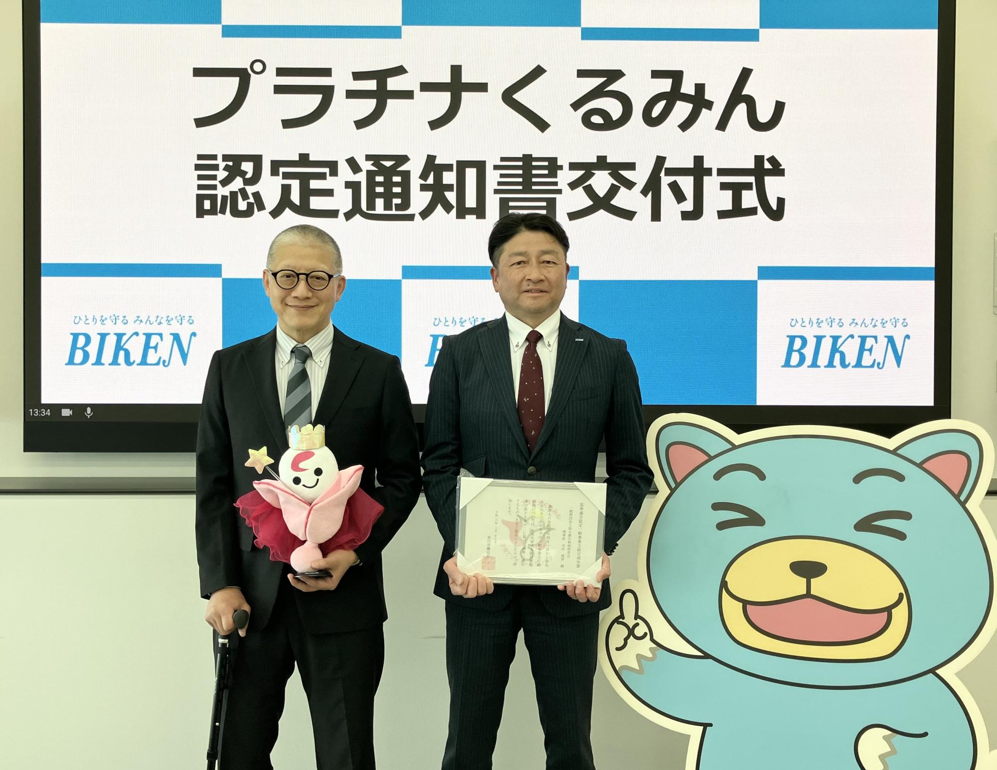 一般財団法人阪大微生物病研究会(以下「BIKEN財団」、本部:大阪府吹田市、理事長:米田 悦啓)は、優良な子育てサポート企業として、厚生労働省より「プラチナくるみん認定」を受け、4月22日にBIKEN財団 観音寺研究所 瀬戸センターにて認定通知書交付式が行われました。